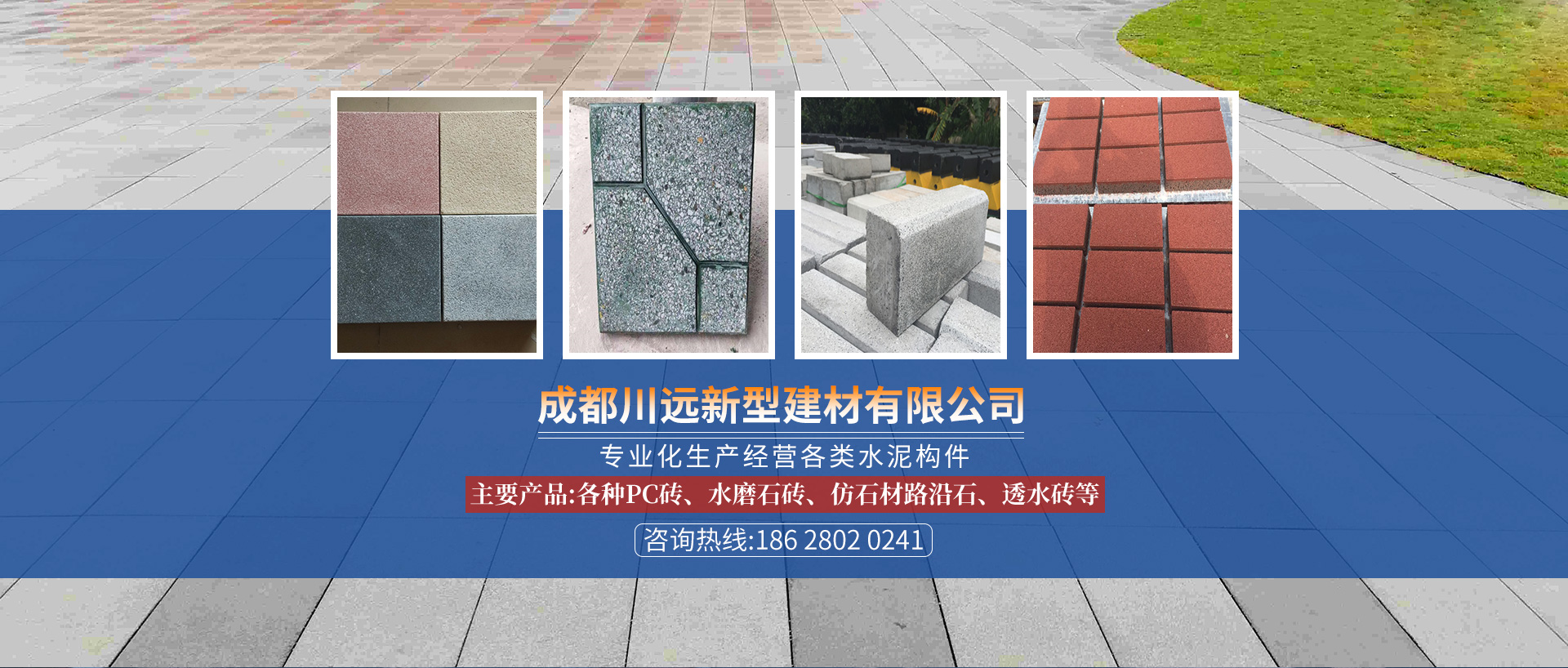 成都川遠(yuǎn)新型建材有限公司是一家專(zhuān)業(yè)化生產(chǎn)經(jīng)營(yíng)透水磚、pc磚定制,仿石材路沿石、水磨石磚的企業(yè)。擁有了面積達(dá)1000多平方的生產(chǎn)基地,多套完整的大、中型生產(chǎn)設(shè)備和眾多專(zhuān)業(yè)生產(chǎn)技術(shù)人員。本廠(chǎng)生產(chǎn)的各種型號(hào)等...